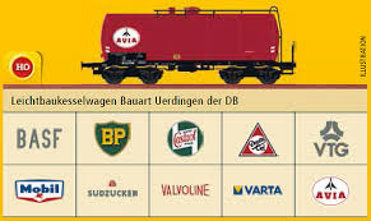 Brawa heeft nog maar net een mooie serie gesloten goederenwagens uitgeleverd of deze fabrikant komt met een serie vierassige ketelwagens met opdrukken die we kennen uit de 2-assige serie. Dit zijn de opdrukken: