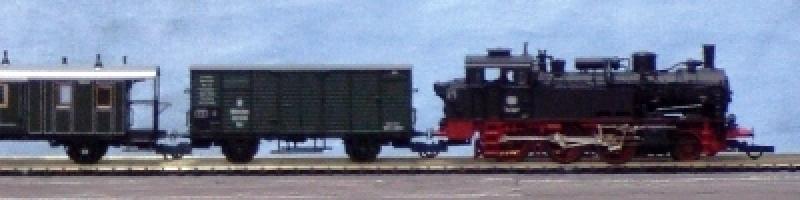 Wolfgang Beck en Philipp Karthaus rijden op hun rangeerloc van de Baureihe 80 naar het Bw om water te nemen. Op een zijspoor staan drie goederenwagens opgesteld. Karthaus herkent er direct twee van.