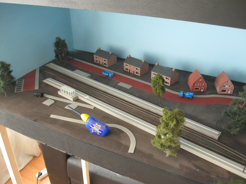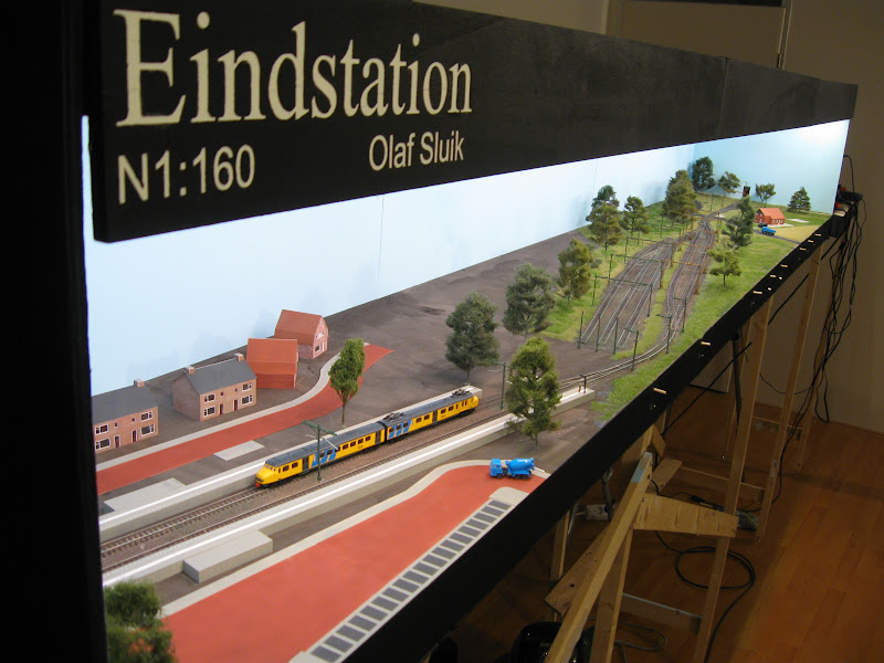 De modelbaan is nu ook voorzien van zijkanten. Voor de stevigheid en meer afscherming tegen "vals licht".