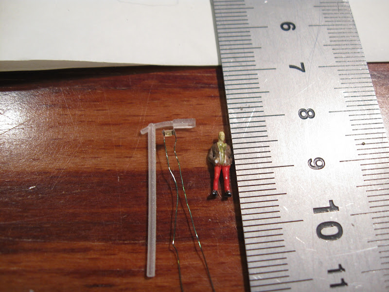 De perronmast is een eigen 3D print. De 0603 led is de KP1608SYCK en het lakdraad is 0,15mm RRP-G-105.
