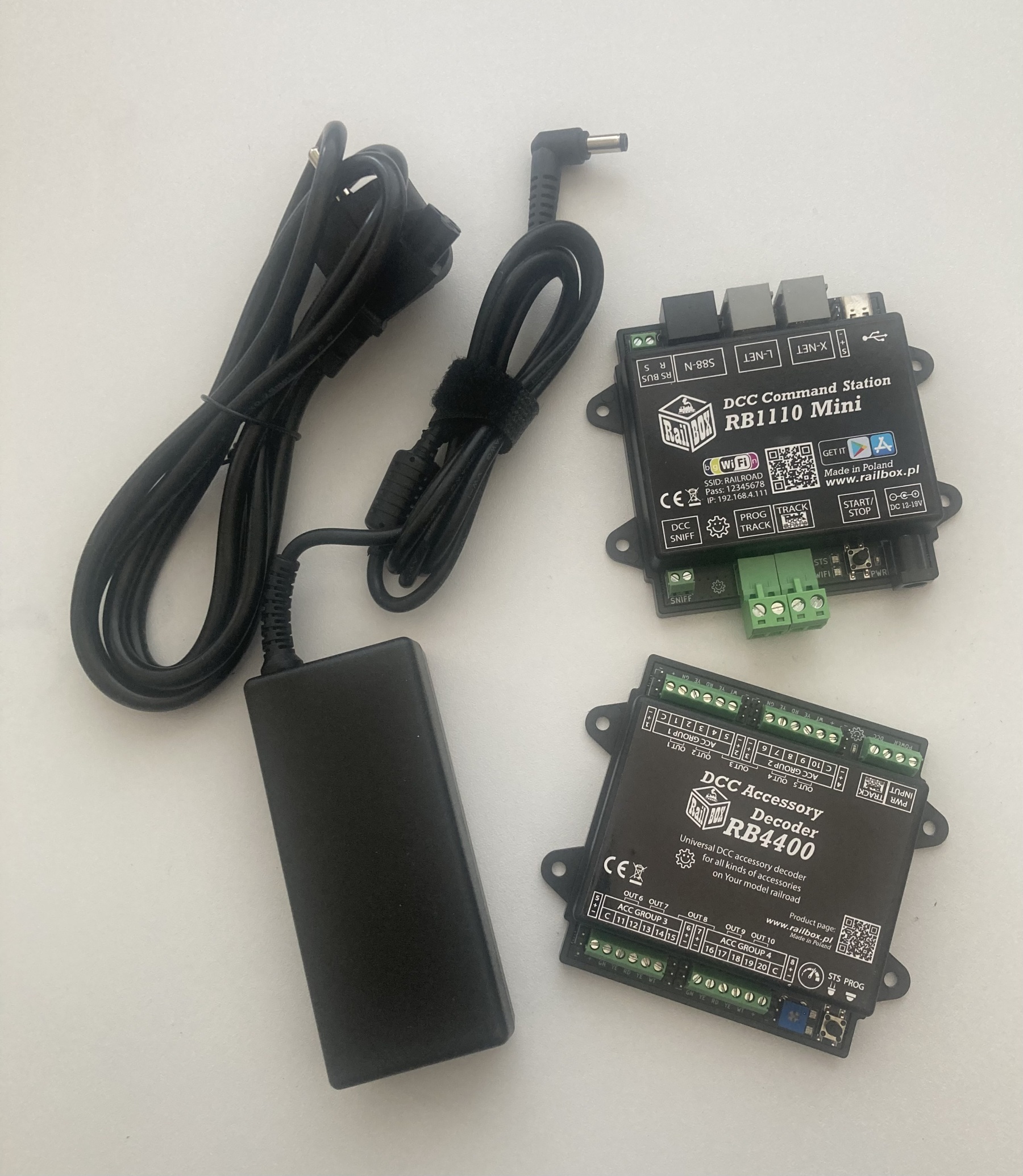 ![]() Gestart door Casmir - Laatste bericht door CasmirGestart door Hans van de Burgt - Laatste bericht door Hans van de BurgtIk heb vandaag een testset ontvangen van een RailBOX RB1110 mini DCC centrale en een RB4400 Accessoire decoder. Het zijn kleine apparaatjes ter grootte van een DCCnext of een YaMoRC decoder.