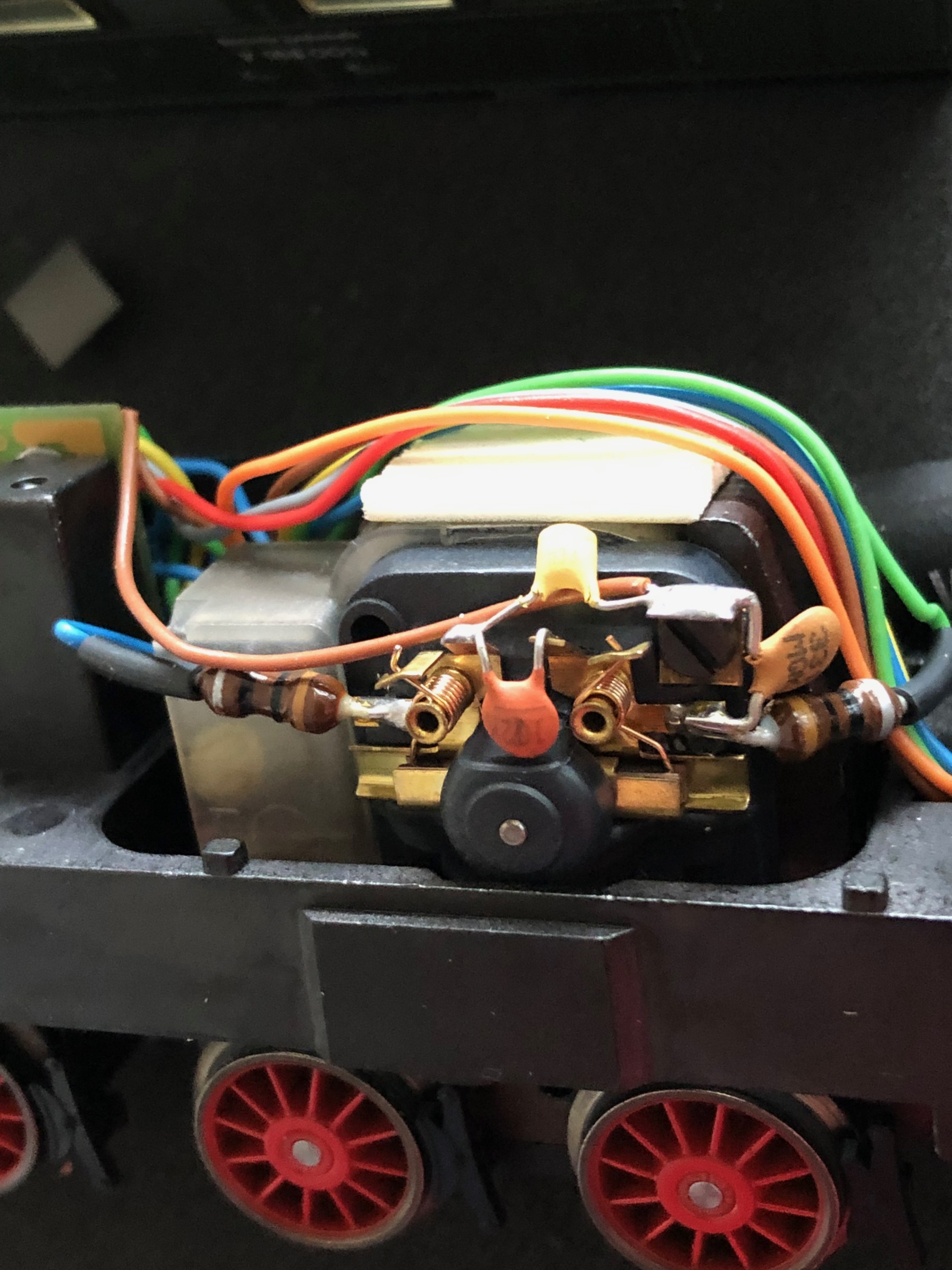 Deze Lok is voorzien van 2 motoren en op beide motoren zitten diverse smoorspoelen, weerstanden en condensatoren. ( zie bijgaande foto) Tevens is de Lok standaard voorzien van een 8 polige schnittstelle.