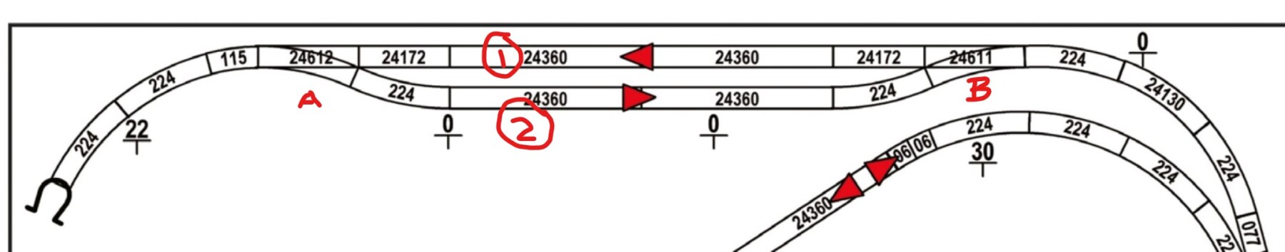 Ik moet wel even nadenken over hoe je deze schakeling het makkelijkst kan realiseren. Bij marklin is het makkelijk omdat je dan met die sleper schakelaars kan werken, maar bij 2 rail is dat al geen optie meer.