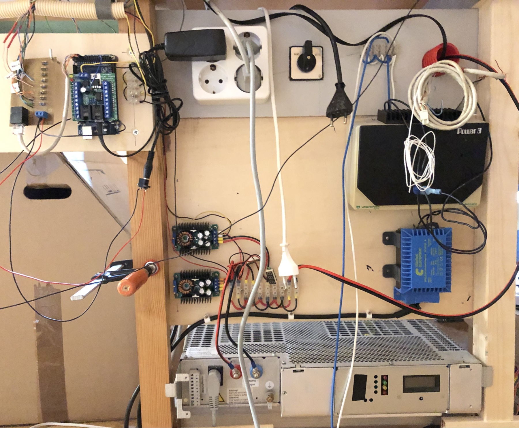 De DC-spanning komt uit een 24V voeding waaruit ik middels 10A DC-DC stepdown converters 18, 12 en later 5 V uithaal. Alle ‘minnen’ ook van de S88 zijn met elkaar verbonden. E.a. bedacht ter voorbereiding voor de victoriaanse Peco-wisselspoelen die op het zichtbare spoor de wissels moeten aansturen. Ik hoop dat ik zo met 1 voeding (20A) kan volstaan. Ik lees op internet over GND-loops als mogelijke oorzaak maar kom daar niet goed uit.