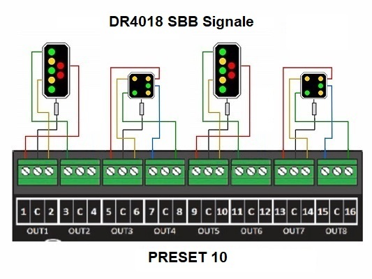 Zoals hierboven ook al gemeld, kun je, als je de Preset 10 instelling nu ook gebruikt voor de combinatie van een DB hoofdsein en DB voorsein, deze ook gebruiken voor de combinatie van een SBB hoofdsein en SBB voorsein, zie het onderstaand plaatje.