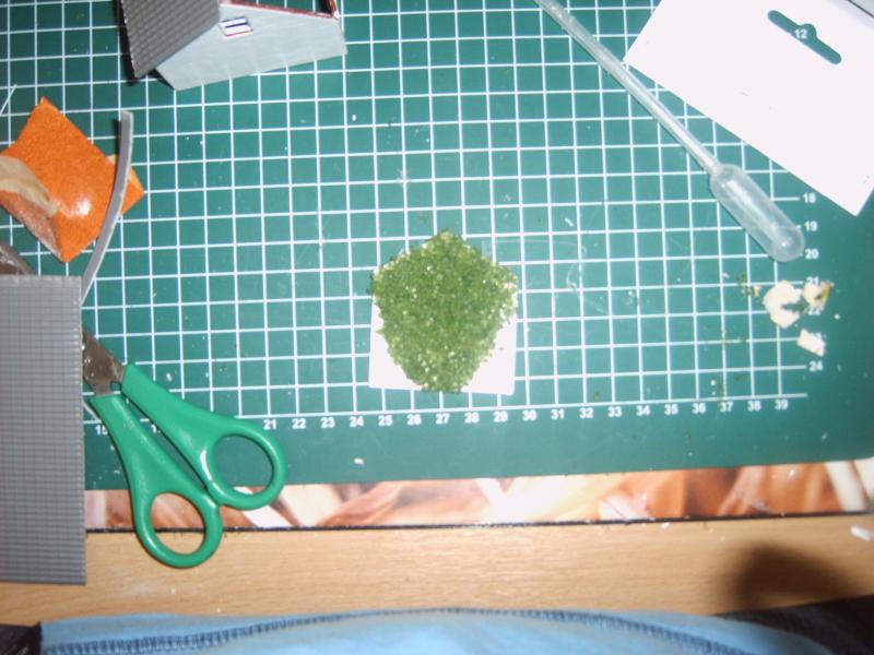 Met een pincet kun je dan de dan "het spul"op de plek draperen waar het behoort te "groeien"...Voor N schaal misschien aan te raden om "turf" van WS te gebruiken..