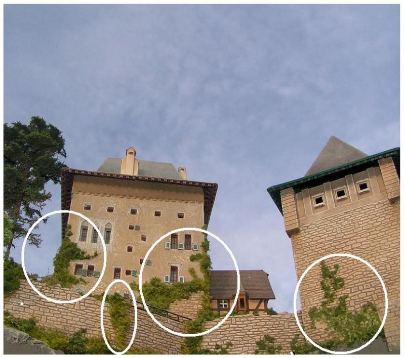 Zoals hieronder te zien is op het N schaal kasteeltje...