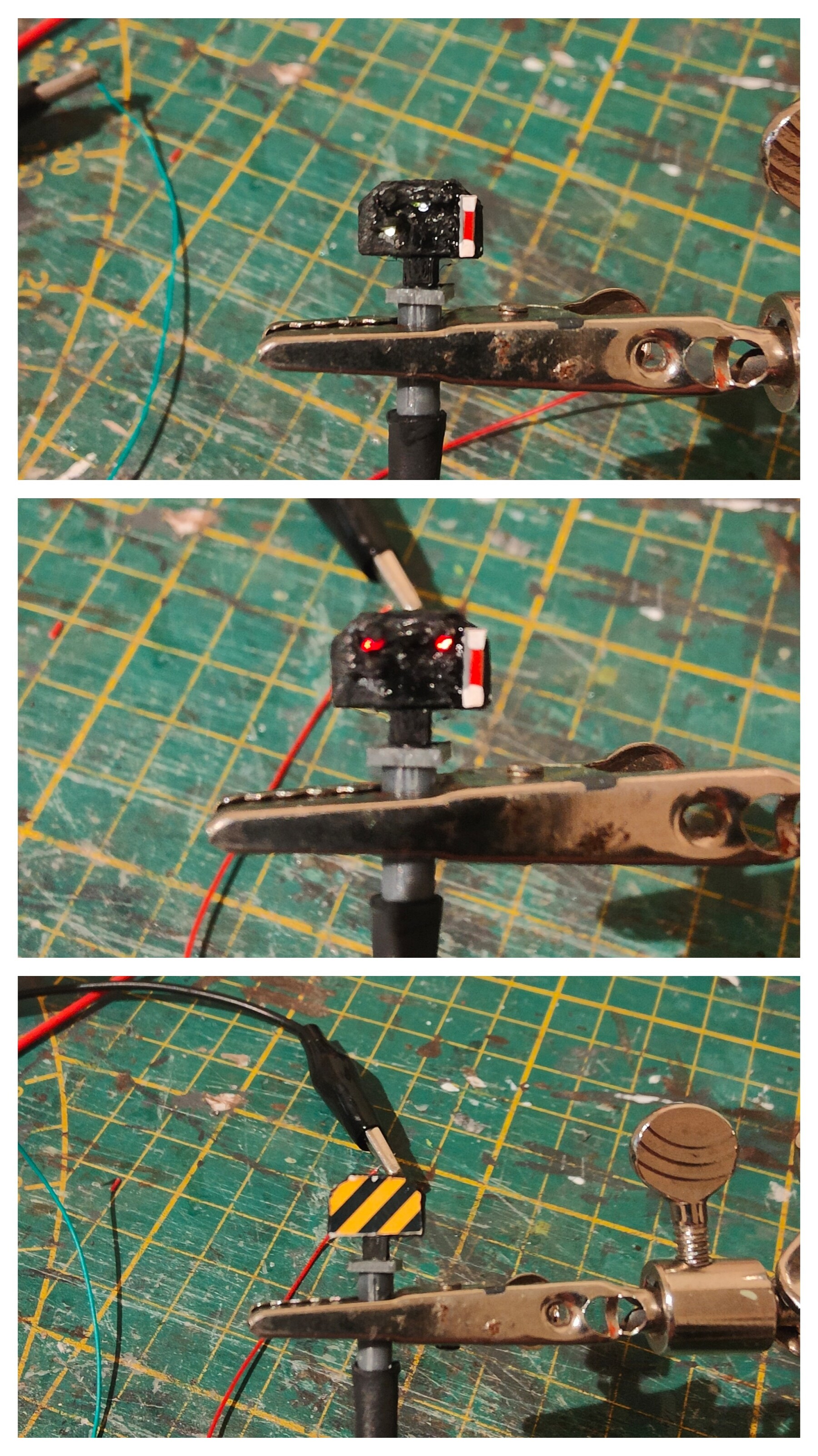 Dus ben ik aan het 3D-tekenen geslagen, de printer (Ender 3V2, PLA) aangezet en bedrade 0201 SMD-leds aangeschaft.
