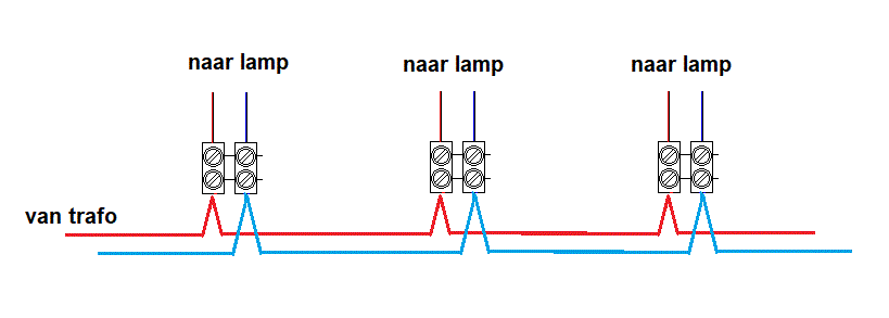 Maar hoe kan ik dan meerdere lampjes op een trafo aansluiten?