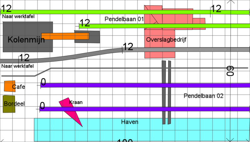 één kleine wijziging de kolenmijn van links op het eerste moduul is verhuisd naar rechts op het laatste moduul i.p.v. de kalkfabriek
