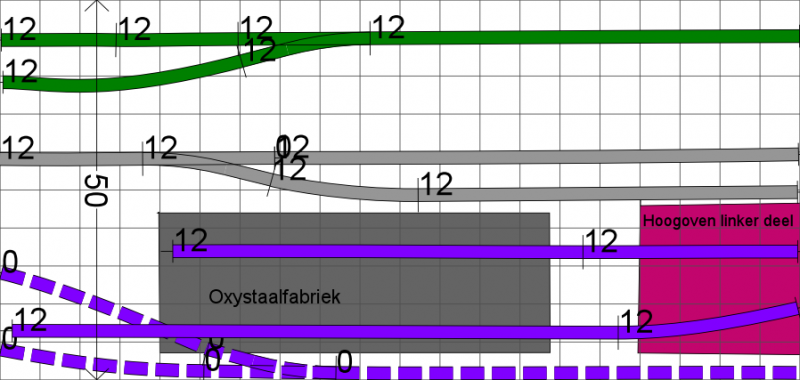 Op zich is het een doorlopend rangeer terrein van overslag bij de haven via een staalfabriek naar de hoogoven, rechts op de baan ligt een kalkfabriek met een klein smalspoor lijntje naar de hoogoven.