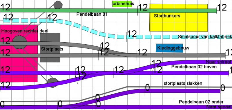 Verder heeft deze baan twee pendel trajecten één aan de achterkant op de baan en één aan de voorkant beneden beginnende bij de haven en overslag bedrijf voor langs op 0 niveau en rechts met een kleine spiraal naar het boven gedeelte en via de hoogoven naar de staalfabriek.