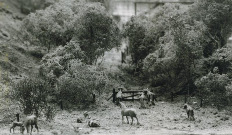 Schrikdraad op isolatoren werd in de draad genoemd, is ook een optie, maar wel bewerkelijk. Op een diorama zou het de moeite waard zijn om zo ver te gaan met detaileren.