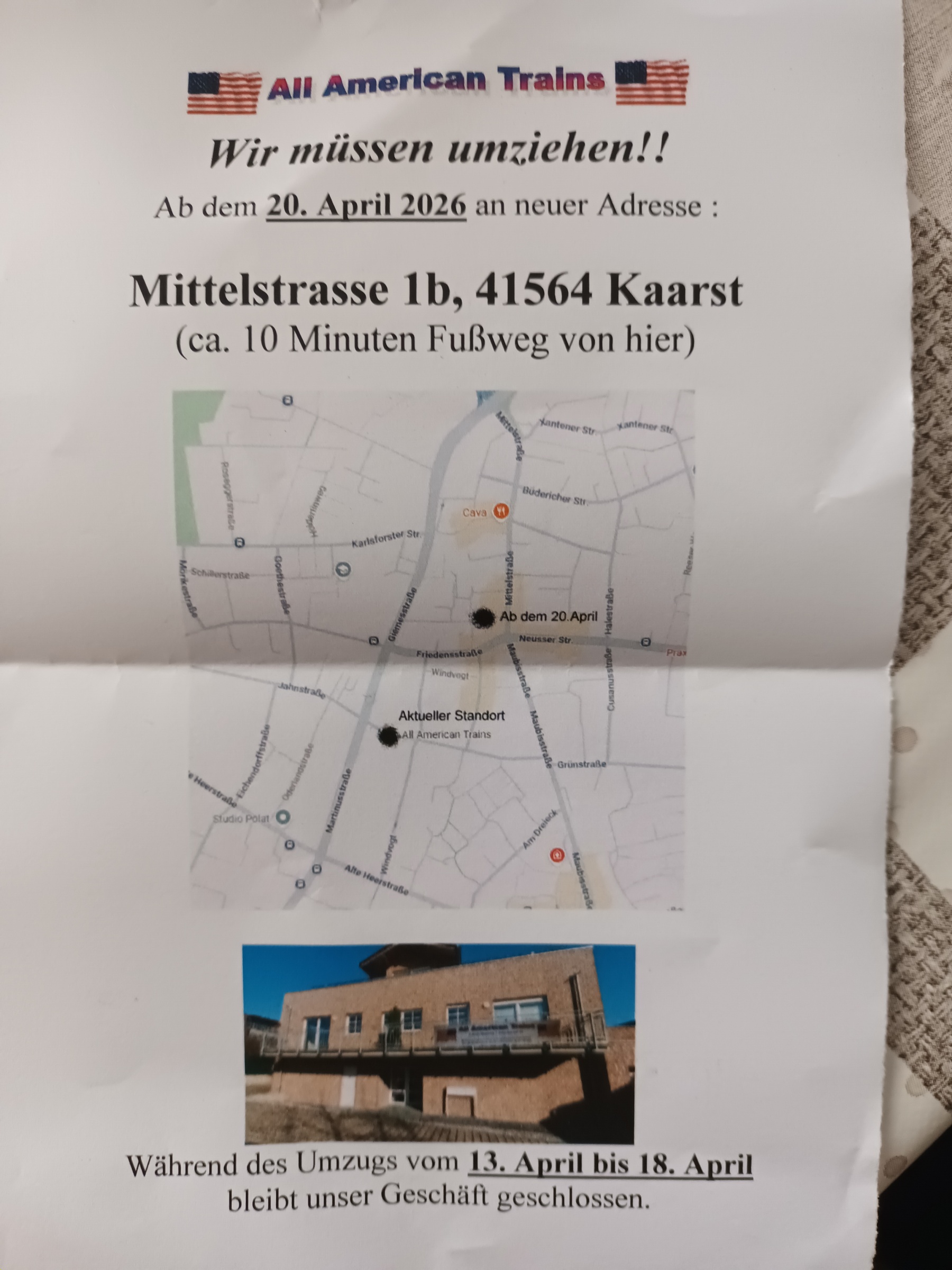 All american trains in Kaarst Duitsland gaat verhuizen naar een nieuw adres.