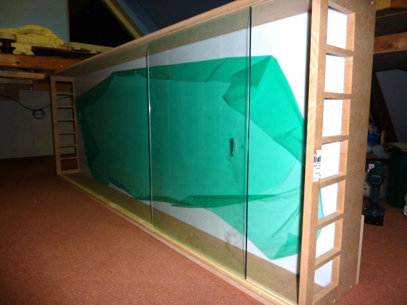 Daar achter komt verlichting. Ik denk zelf aan TL verlichting. Aan de voorzije komen plexiglas leggers waar het dubbelspoor overheen komt te liggen. Ik kon het niet laten alvast een schuifraam er in te hangen. Het past!