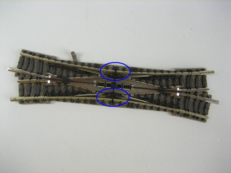 Als ik een loc overheen laat rijden dan krijgt hij bij het hartstuk wel nog spanning zonder kortsluiting, dus de polarisatie is blijkbaar wel goed aangesloten, maar in het midden stopt de loc met rijden.