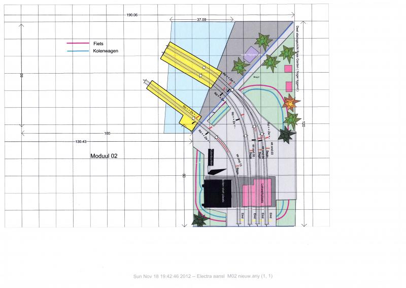 en de 2 kleine bochtjes van de draaischijf onderaan naar de rail langs de kade.