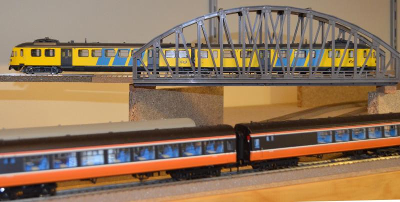 Het werkte allemaal. Het 2-rail gedeelte op DCC en het 3-rail gedeelte op Motorola nieuw en DCC. Echter 1 locomotief Class 201 Enterprise, die toen alleen het 2-rail gedeelte was aangesloten perfect liep. (moest wel analoog uitschakelen, anders vergat hij wel eens dat hij digitaal was en vloog bijna 3-hoog het raam uit.) Op de gekste momenten stopt de lok, zodra er een 3-rail lok wordt ingeschakeld. Rijd soms vanzelf weer verder, soms door de snelheid te veranderen. Maar ik moet altijd het licht weer handmatig aanzetten. Zou deze decoder defect zijn of gewoon niet samen met Motorola kunnen werken? Overbelasting, maar van wat? Zou een andere decoder uitkomst moeten bieden? Moet ik misschien nog iets veranderen in de CV's. Het betreft hier een Hornby Sapphire R8245-decoder.