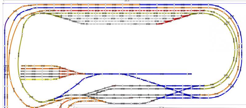dat is mijn baanplan en heb de baan ook al liggen en aangesloten... met de melders S88SD16-n Wissel Decoder DCC van rosoft.