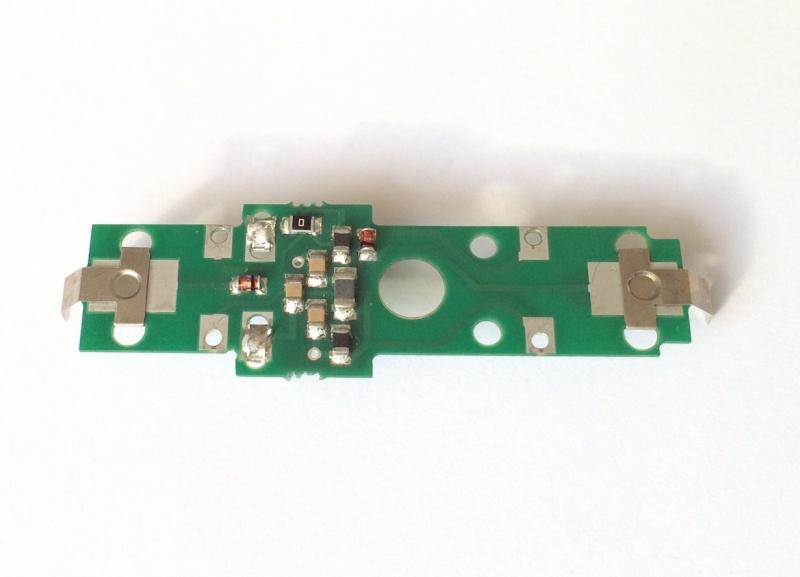 Bij dit splinternieuwe locje is de print echter voorzien van diverse onderdelen die mijns inziens voor ontstoring zijn bedoeld en voor het schakelen van licht voor of achter (diodes?, zie foto)