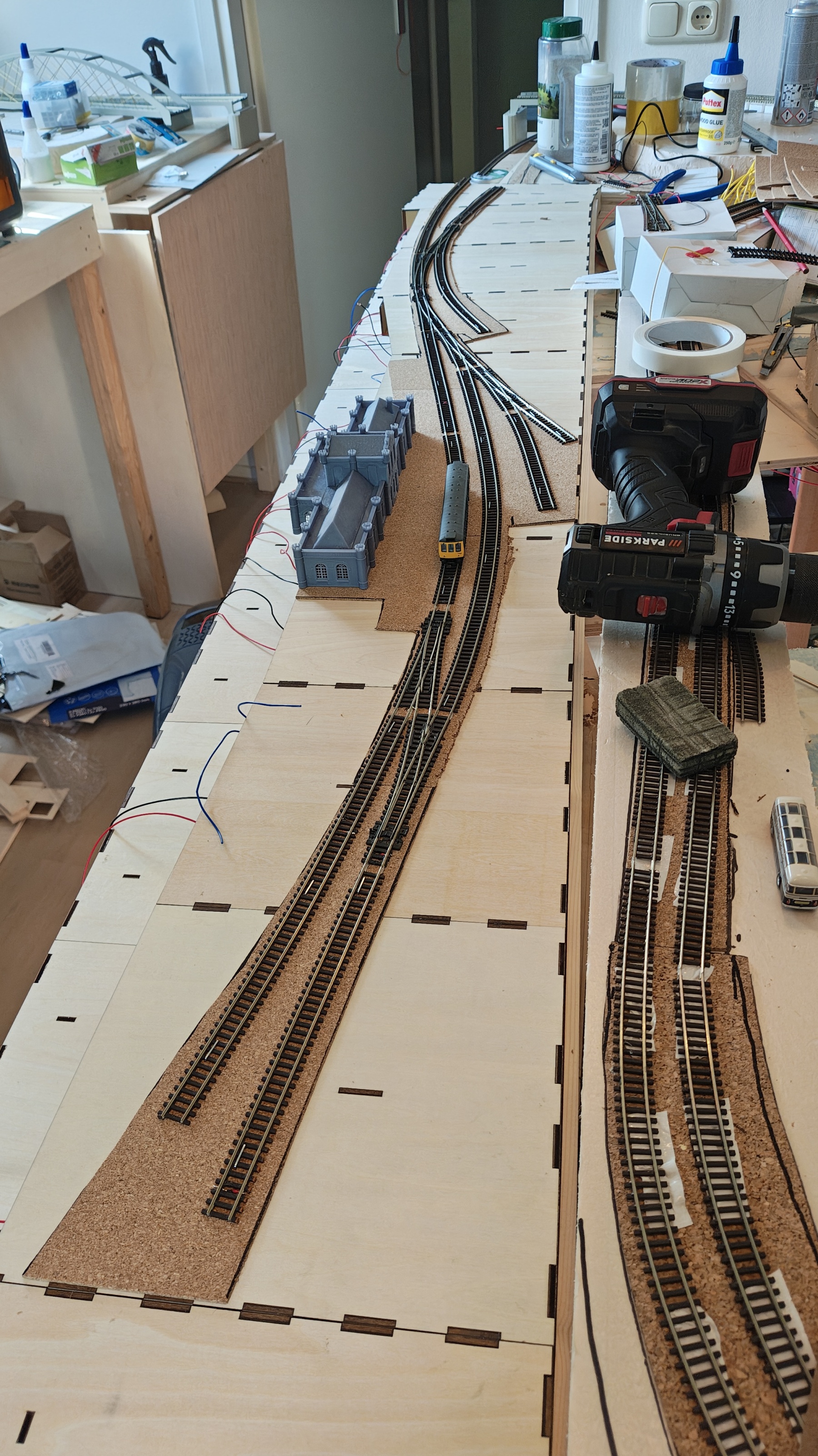 Nadat de module gelijmd was en alles mooi in elkaar zat was het tijd voor het spoor te leggen