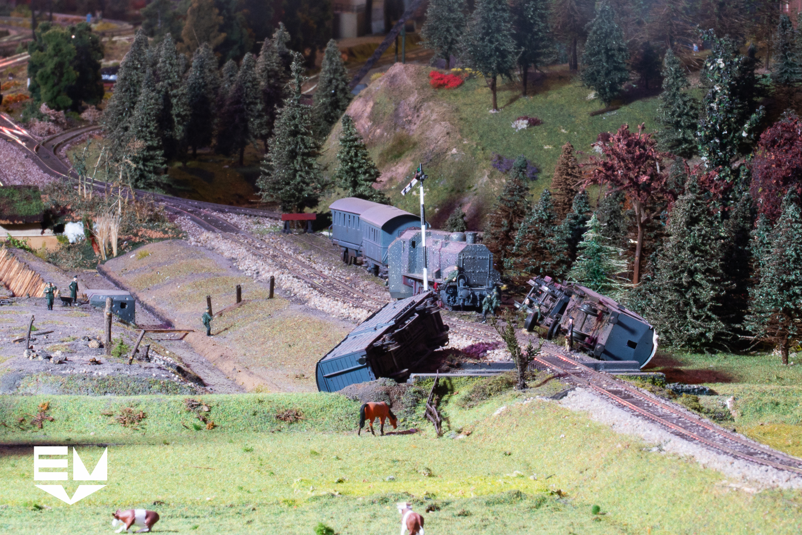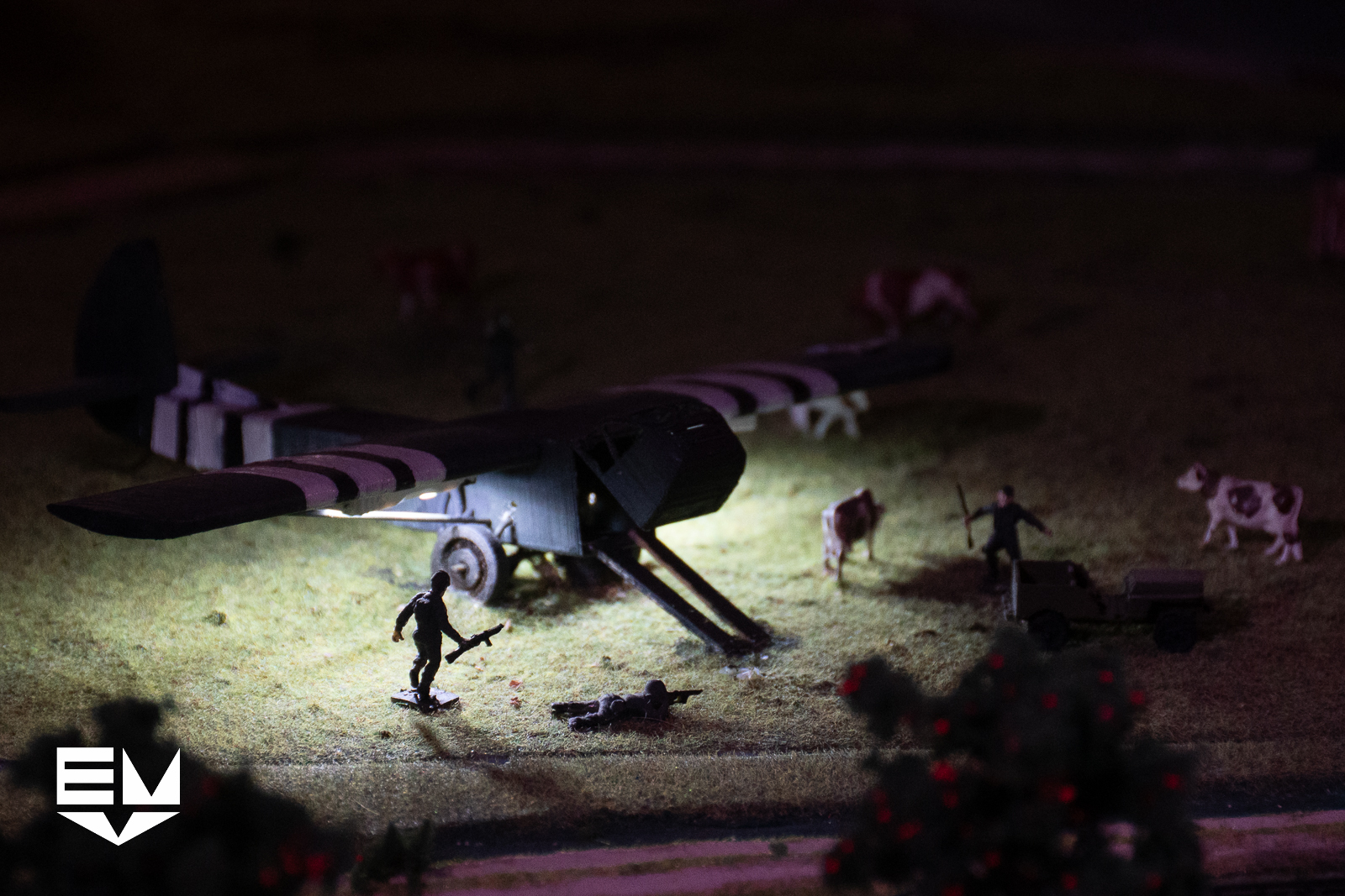 Het is al eens eerder gezegd, maar het kan geen kwaad om het nog maar eens te herhalen. Spoor op Vleugels is onderdeel van het museum Bevrijdende Vleugels en gevestigd op een oude legerbasis aan de weg tussen Best en Son en Breugel. Dus toen we begonnen met de bouw van de baan in hal 10, was het vanzelfsprekend ook aandacht te besteden aan wat taferelen uit de oorlogstijd. Zo is er een scene waarin we laten zien hoe het verzet destijds zijn best deed de Duitsers tegen te houden bij de inval in mei 1940. Een pantsertrein trok 10 mei midden in de nacht over de brug bij Gennep.