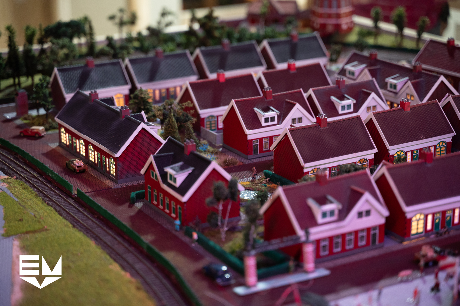 Sinds de vorige post over Spoor op Vleugels is er wel van alles gebeurd, maar heeft met name zeer zeker ook betrekking op de hal waarin Spoor op Vleugels wordt gebouwd.We bouwen natuurlijk vooral door aan de scenery van het deel Boxtel-Eindhoven maar de hal zal ook wat op een andere manier worden aangekleed, het moet tenslotte een deel van het speelgoed museum worden. De museumbaan kan natuurlijk niet verplaatst worden, maar er is wel wat discussie ontstaan over hoe het overige deel moet worden aangepakt. Er komen vitrines waarin (model)spoor gerelateerde items getoond gaan worden. Er gaat komende week een interieurontwerper aan de slag. Daarvoor moeten we als EMV ook ruimte inleveren, want er is helaas niet genoeg ruimte voor alle drie EMV gerelateerde banen. Het Stationskwartier krijgt een andere plek en zal andere scenery krijgen, want de stad Eindhoven met zijn station wordt gebouwd op Spoor op Vleugels. De aankleding zal waarschijnlijk een Zwarte Woud opzet krijgen.