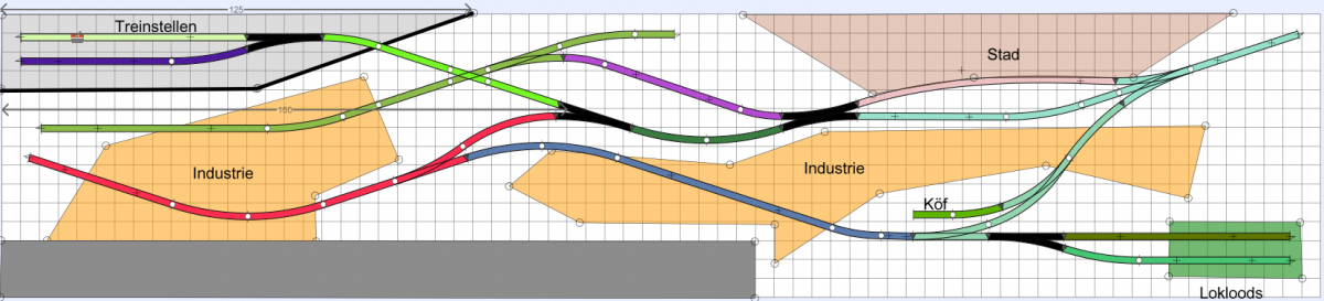 Het advies was ook maak een proef opstelling, en ga aan de slag met de vaste treinroutes voor afkoppelen, en aankoppelen. En ook eentje voor het omlopen, zoals je aangaf te willen.
