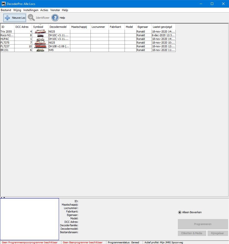 Vergeet niet dat je de driver voor de SPROG moet installeren, die vindt je op www. sprog-dcc.co.uk.