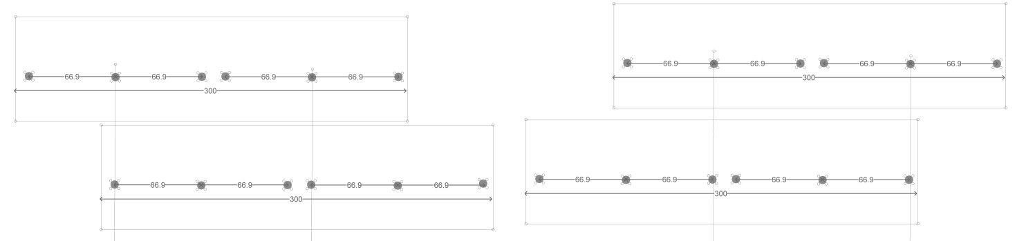 Die bakken 30cm worden breed, de rail afstand is 6,69cm. Ik heb dus 6 gaten nodig. Met in de middelste de plankendrager