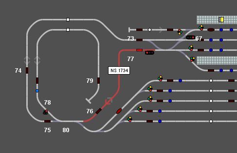 Als we de loc vervolgens handmatig naar punt 79 laten rijden, en we routeren hem vanaf daar naar punt 76/77, dan lukt dat wel. We hebben alles al geprobeerd/gecontroleerd, ook de Diagnose-tool gebruikt, maar noppes. Wie weet raad? We hebben iTrain 4.1.8.