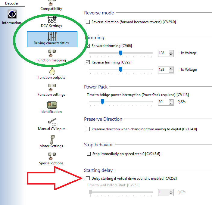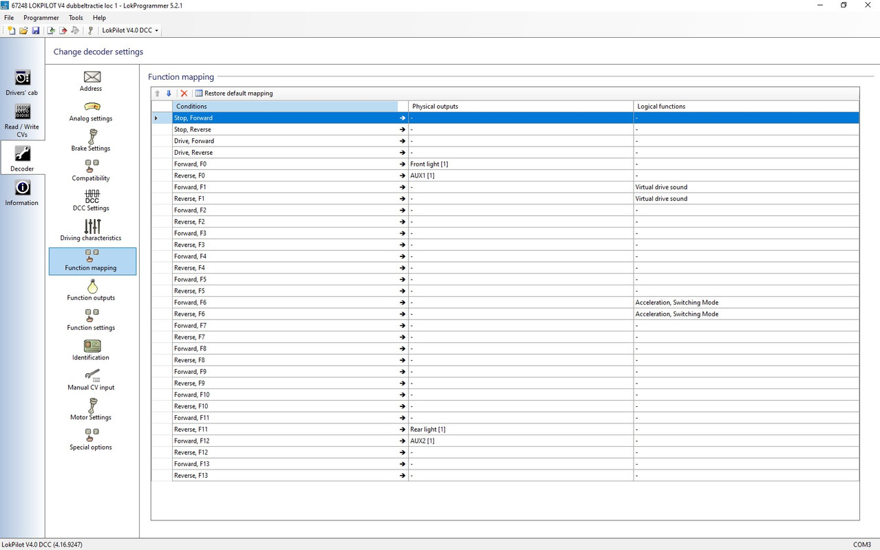 Dus bij de Lokpilot heb je bij F1 de instelling "virtual drive sound" bij "logical functions", die moet aangevinkt staan.