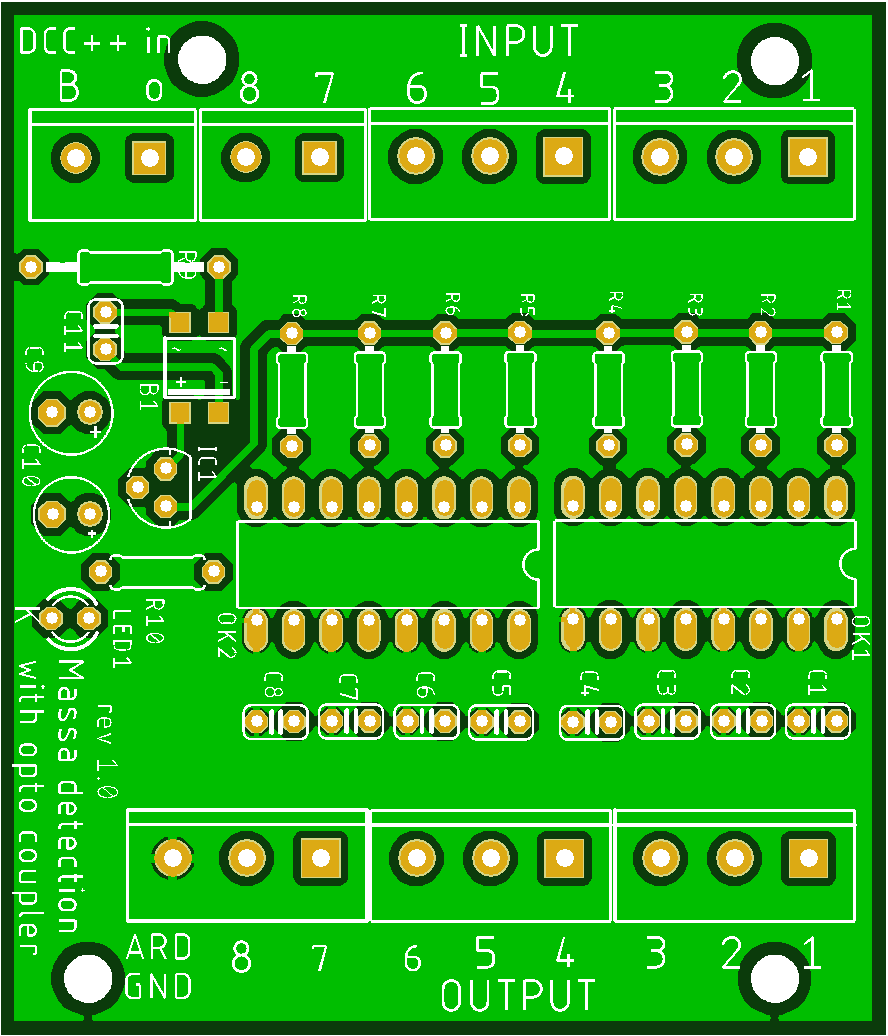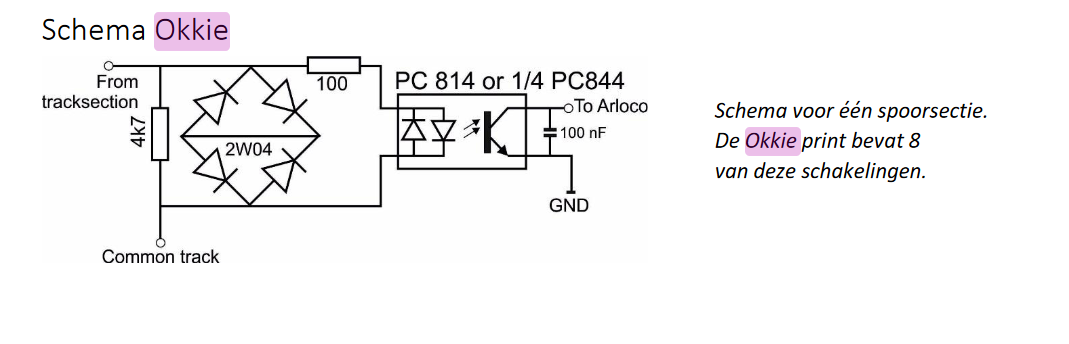 ), maar met de okkie is er dus een compleet bouwpakketje. Voordeel van optocouplers is dat je baan galvanisch gescheiden blijft van de electronica die achter de detectieschakeling zit. Dit heeft binnen onze club (HCCM) de voorkeur. Optocouplers zijn niet noodzakelijk maar wel veiliger en mooier vind ik ook.