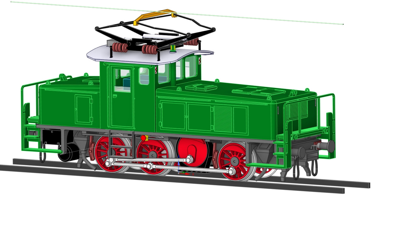 Hier alvast de 3D tekening die ik met DesignSpark Mechanical creator heb gemaakt aan de hand van wat foto's die ik op het internet vond en ik bezit twee boeken van Eisenbahn Kurier die de Altbau e-locs uitvoering beschrijven en laten zien. Ik streef niet naar een perfect model van de bestaande locomotief. Het moet er op lijken, maar het moet ook maakbaar zijn in de schaal H0 en printbaar met mijn 3D printers.