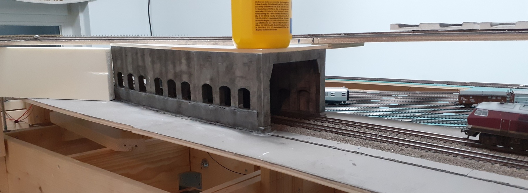 Wat mij betreft klaar. Vanmiddag nog een plaatje op maat gesneden wat het dak/plafond van de tunnelbak moet worden. Hier doe ik voorlopig even niks mee. Het dak ligt er los op. Want er moet ook nog iets van bovenleiding komen, eens. Daarna kan het vastgelijmd worden.