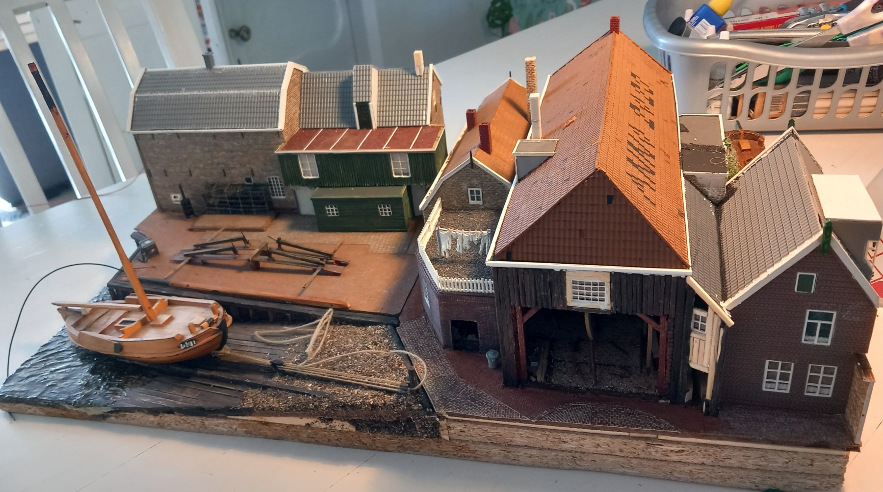 Ook de randjes van de scheepswerf meteen in hetzelfde zwart geverfd, wat een ander gezicht! Ook blij mee: