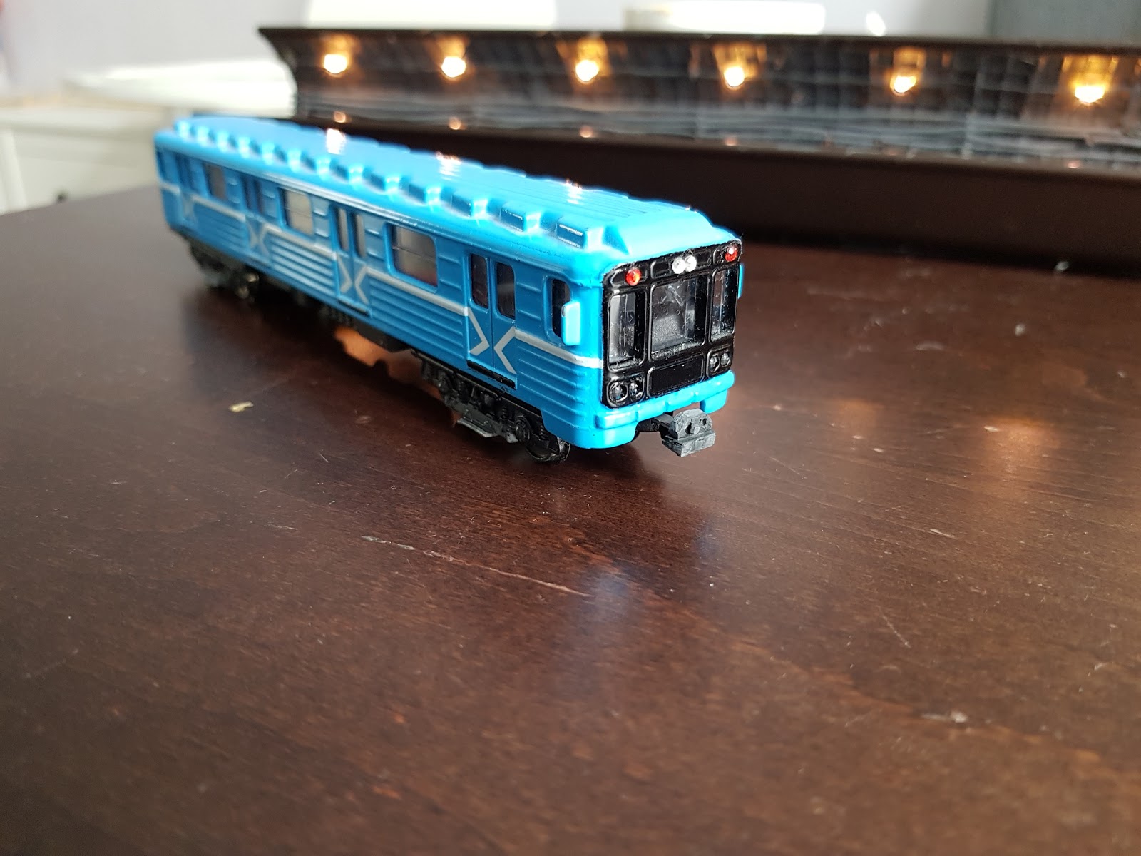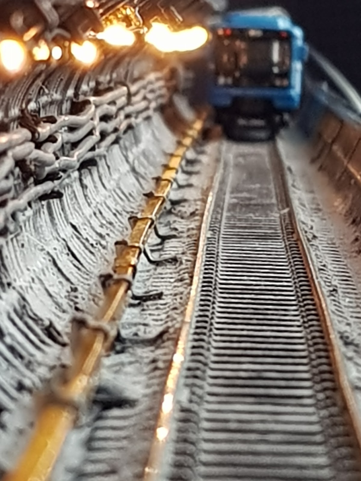 Er is al enige tijd voorbij gegaan en ik heb een kleine metro diorama gemaakt. Het gaat om een recht stuk metro tunnel in een plexiglas buis ter bescherming. Paste zo onder de tv in de tv kastje. De metrotrein is een russische 81-717 metrostel bestaande uit 2 bakken.