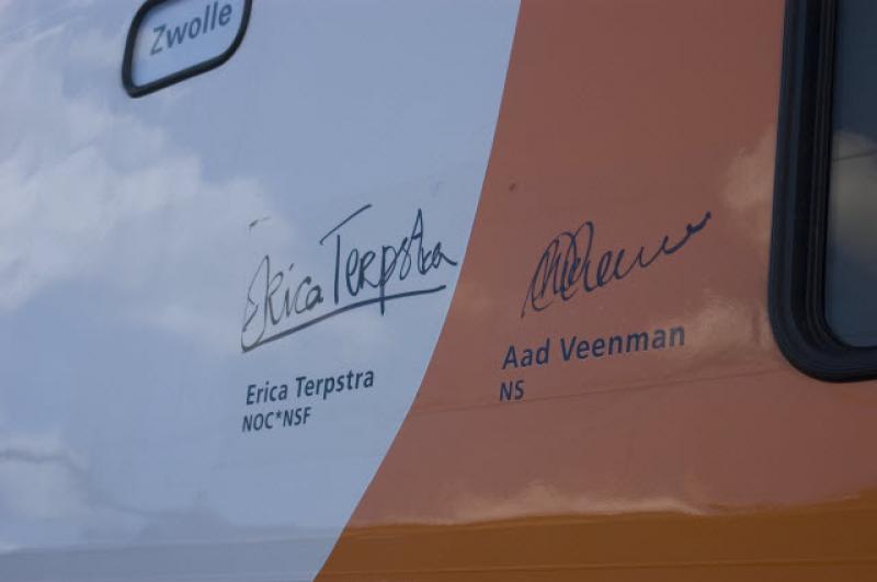 Er hebben ook diverse teksten op het stel gestaan. Volgens mij was dat in het voorjaar 2005 "NS sportief onderweg naar Turijn en Beijing". In het najaar was dat al weer weg.