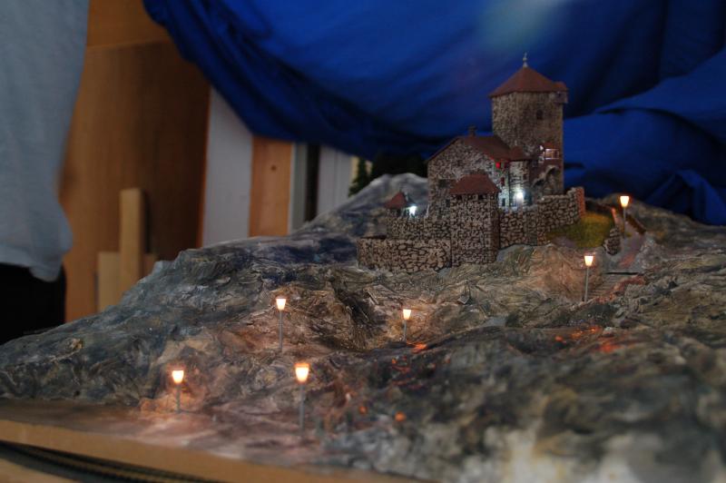 Gelijk ook alle verlichting aangesloten en tevens zit er in de burcht een luidsprekertje voor leuke geluids effecten.