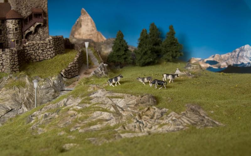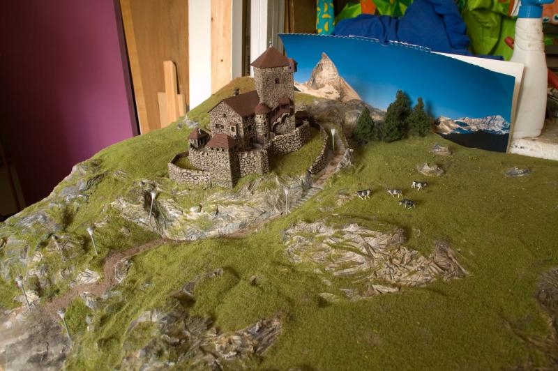 deze week het kasteel gedeelte afgemaakt. Laatste randjes gras toegevoegd, struiken geplaatst en wat extra bomen.