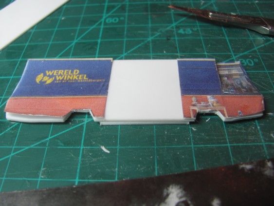 Daarna een deur gemaakt van stripjes. en de twee kanten met elkaar verbonden door twee plaatjes styreen.