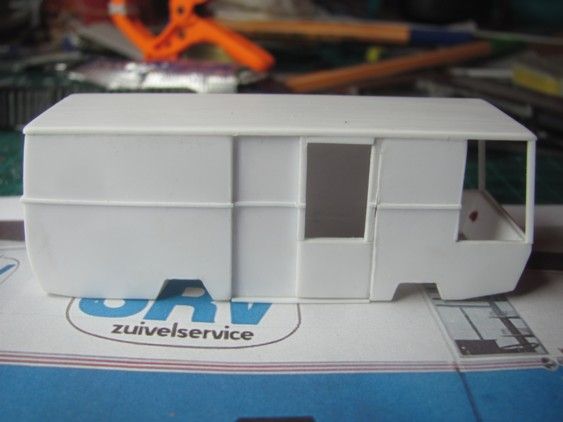 Ik denk eigenlijk dat zo'n recht-toe-recht-aan doos van een SRV wagen véél makkelijker van rechte styreenplaatjes te maken is dan met 3D printen. Zo'n stadsbus met ronde vormen en veel ruiten is een ander verhaal, maar die rijdende supermarkt kan niet al te moeilijk zijn. Zou dan wel bv 3Dprints van de verzameling bierkratten achterop willen maken (jawel, bij ons rijden ze rond met een soort fietsendrager vol bierkratten, leve het platteland)