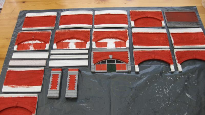 Als eerste het verven met baksteen rood. Een mengsel van rood, oranje en een beetje bruine Acrylverf van de Action.