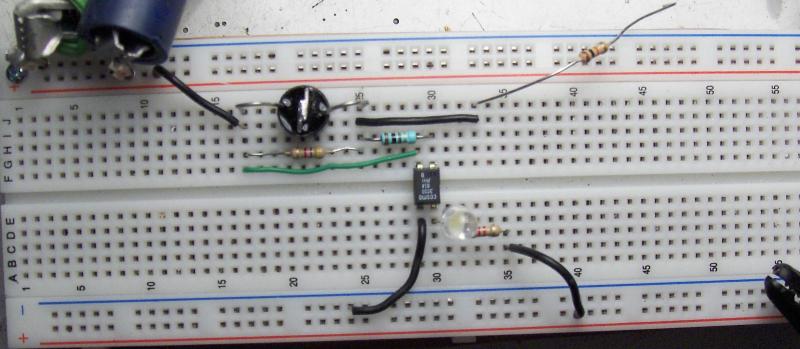 Ik ben niet heel elektronisch maar, probeer het een en ander wel maar dit lukt mij niet. Ik heb trouwens i.p.v. een Octocoupler PC814 een EL814 gebruikt maar volgens mij maakt dat niet uit. Ik hoop dat ik het duidelijk omschreven heb, anders verneem ik het graag indien meer duidelijkheid.