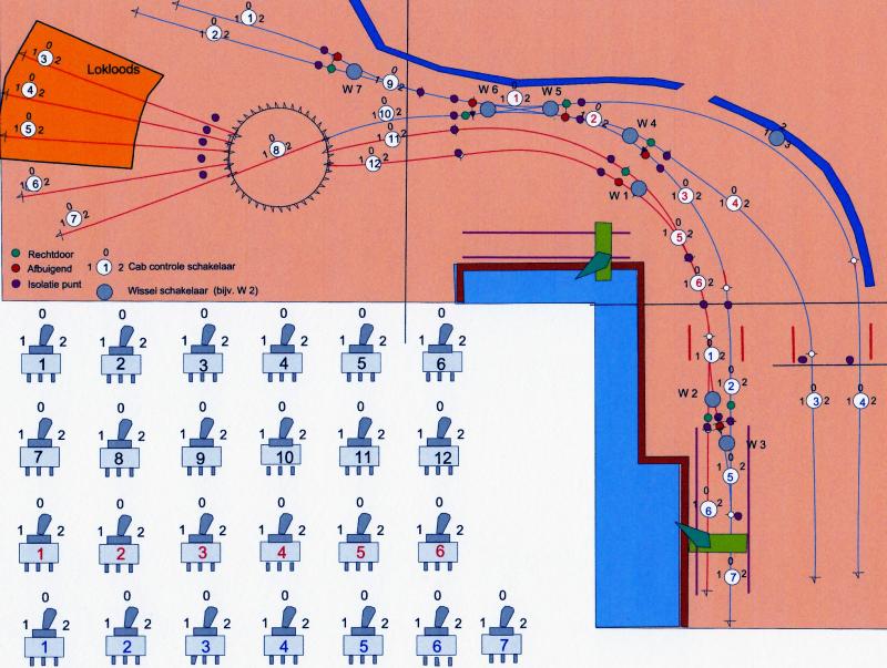 Wat die schakelaars voor de wissels betreft, zie ik dat je met een 2-kleuren led werkt om de stand van de wissel terug te melden.