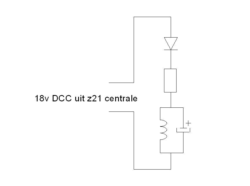 Hier is een relaisspoel te zien met een diode en een kleine elco om het goed te laten werken op de DCC spanning.
