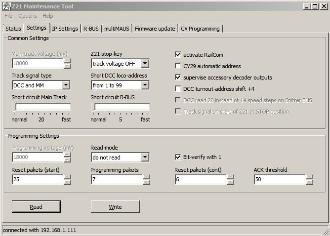 Heb net de z21 Maintenance Tool via de PC opgestart en standaard staat de Track Signal Type op DCC+MM.