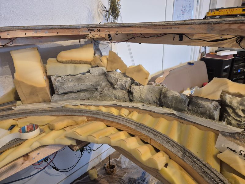 de foto's zijn van de voor/achterzijde zelfde rots. Zo zie je niet dat de trein een rondje rijdt.
