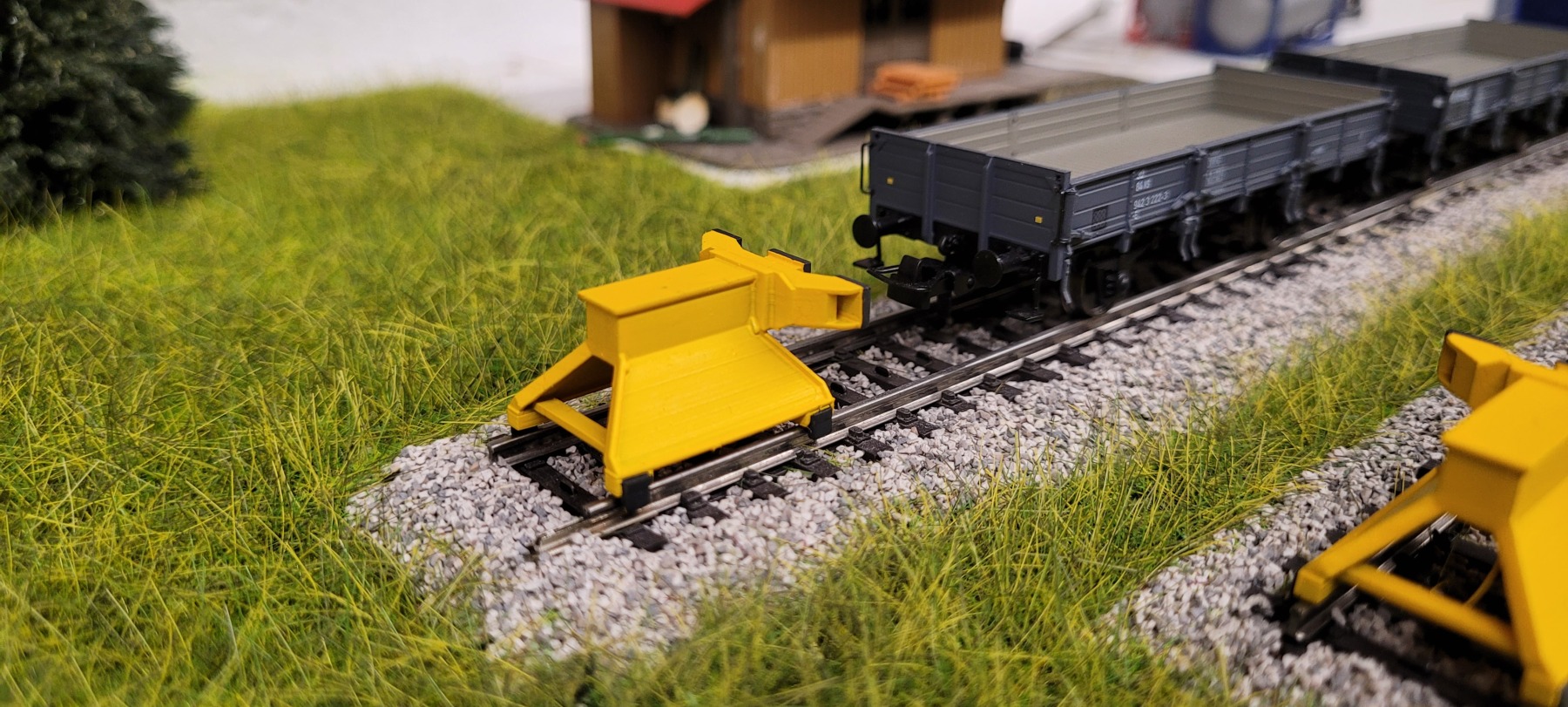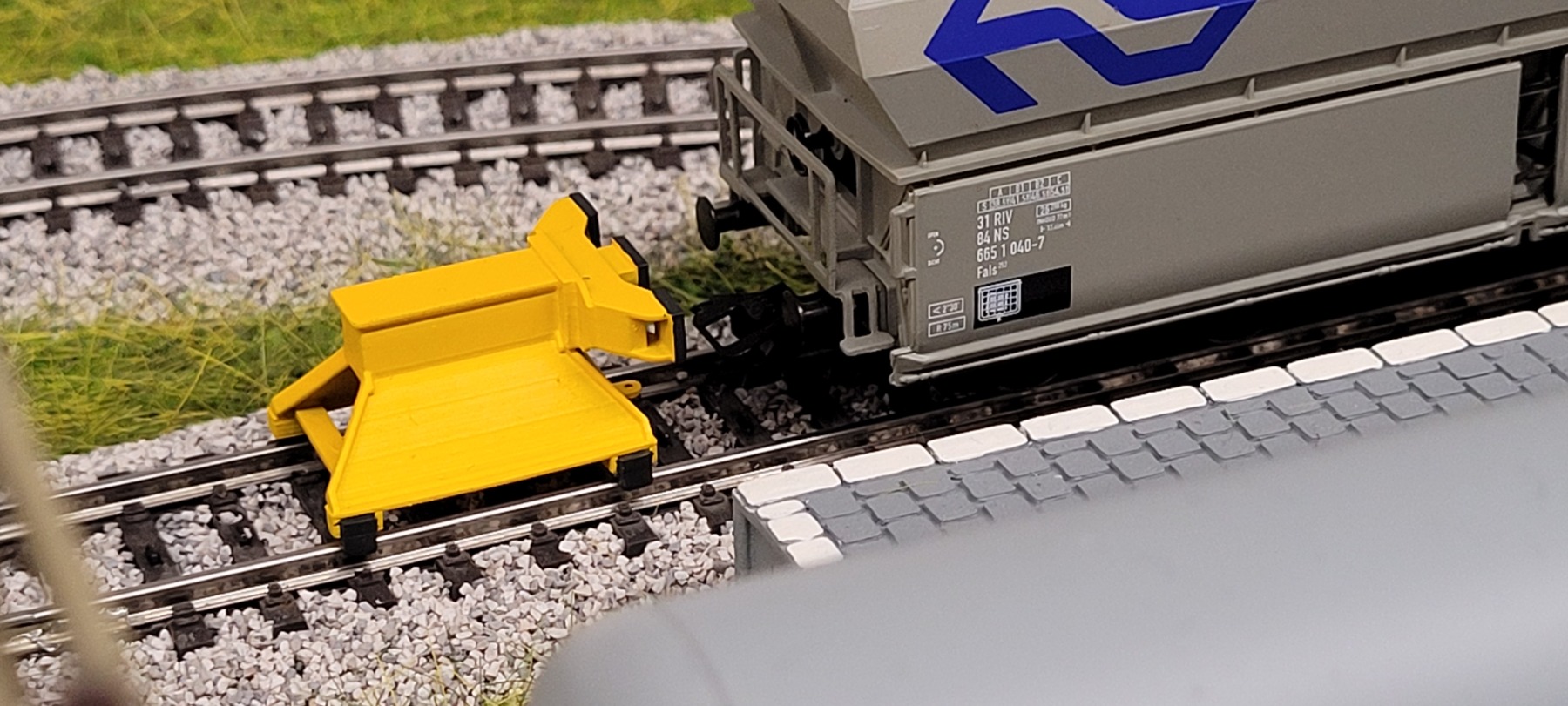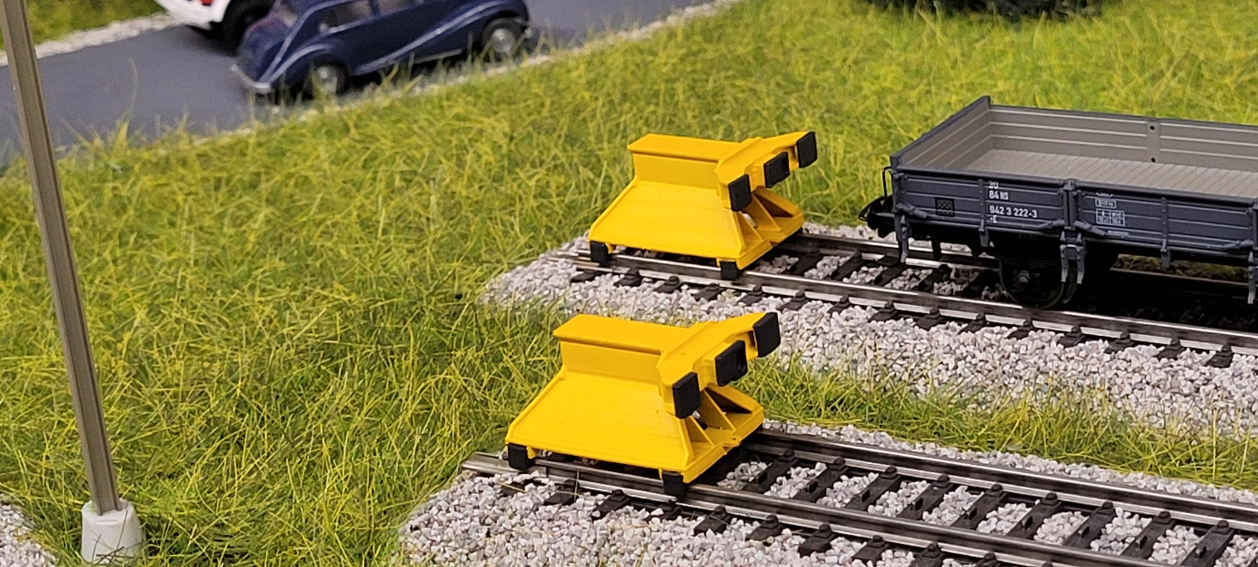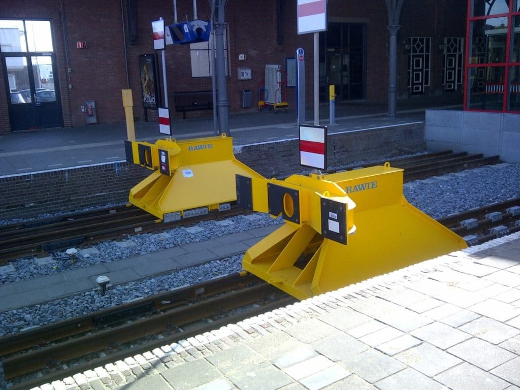 Eigenlijk moet je achter die jukken nog een stukje spoor laten doorlopen, want als er een trein tegenaan rijdt schuiven ze een stukje door.