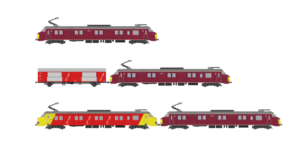 Er is nog een posttrein, de Nederlandse voor de PTT. Bestaande uit een bruine mP 3000, al dan niet gecombineerd met een H-Post of een tweede mP, rood-geel (dummy).